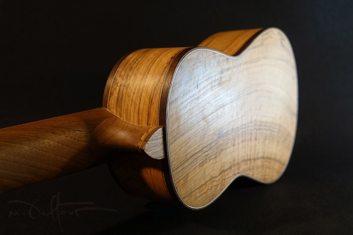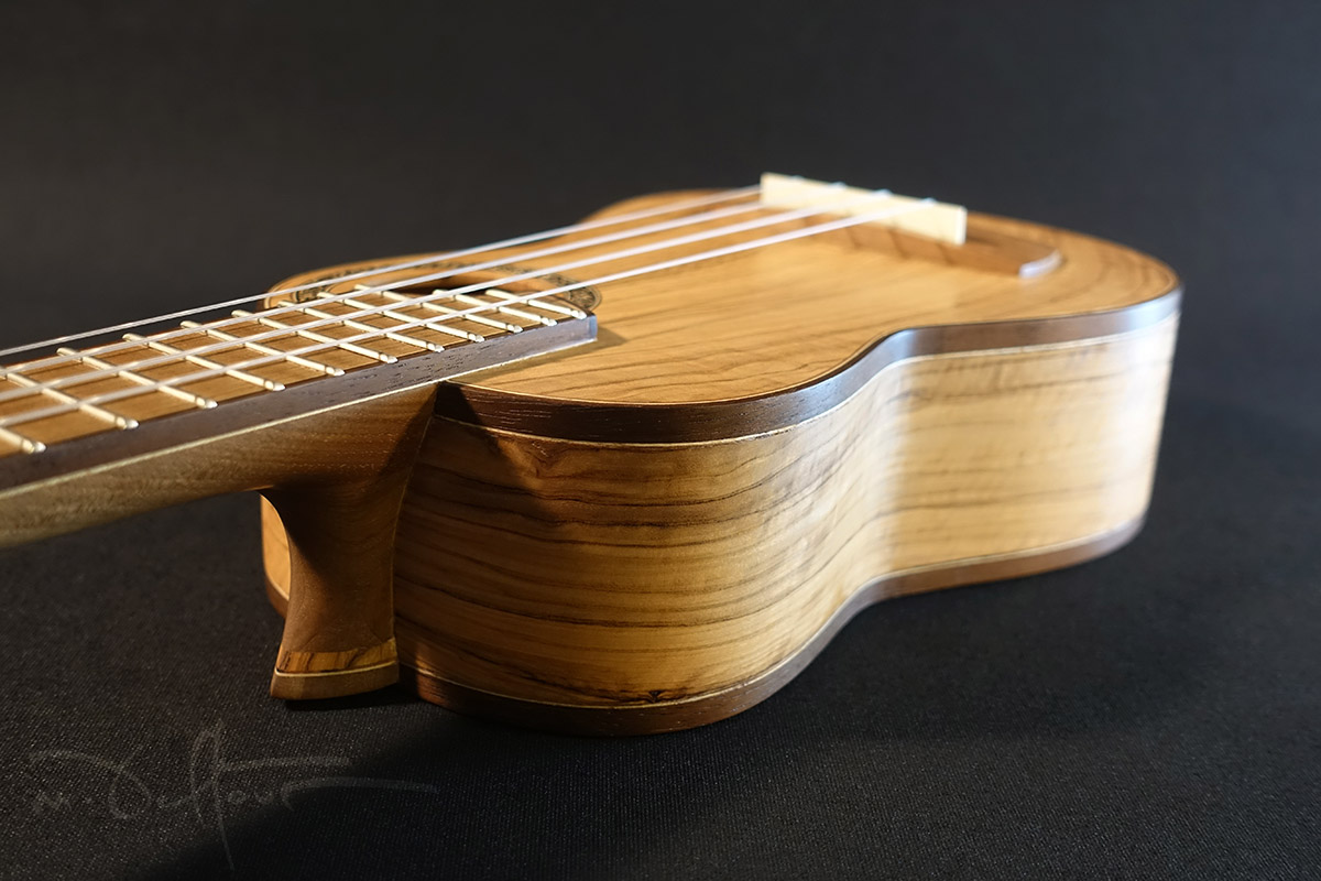 "chimy" tone with the full olive wood construction and dense wood of the neck.