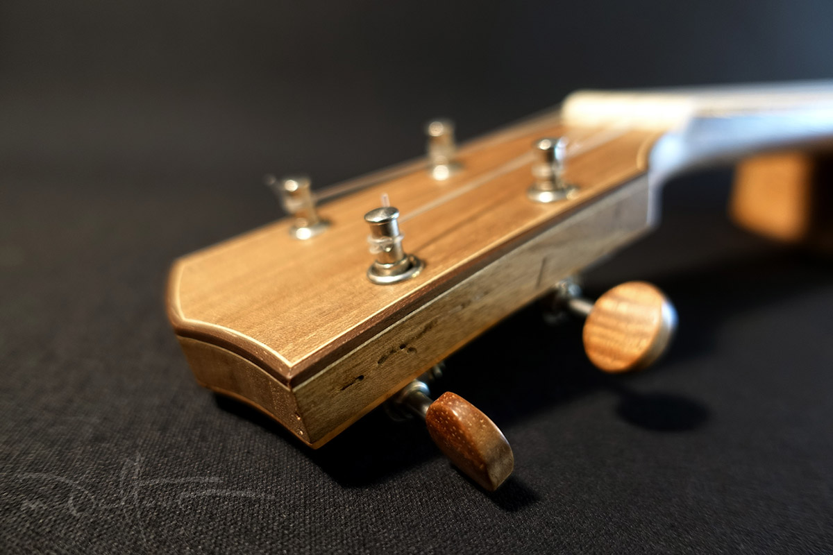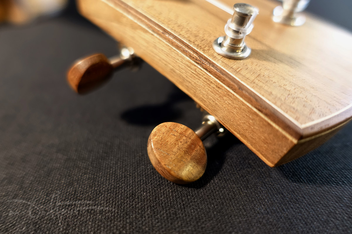Tuners: Nikel Waverly ukulele tuners with Koa buttons