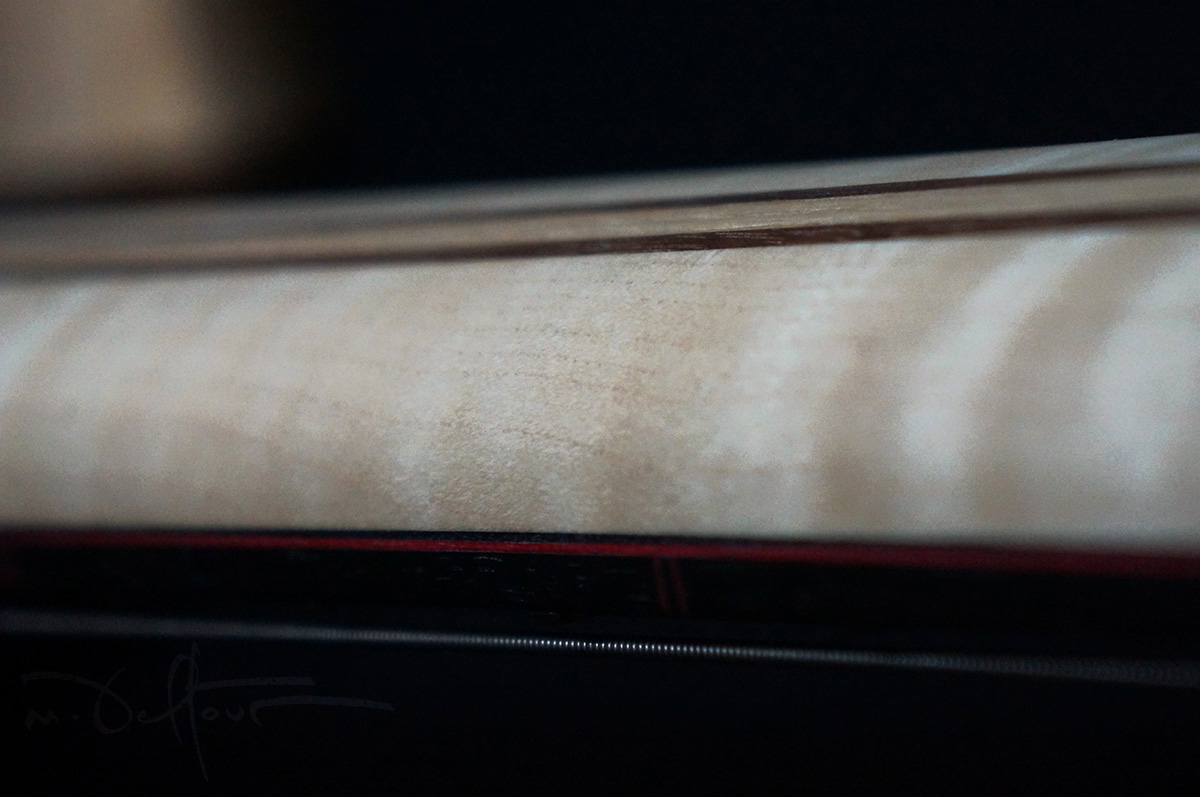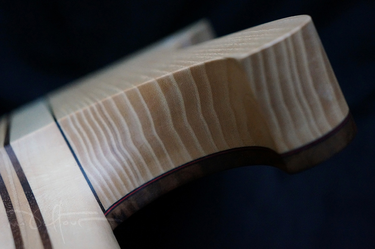 Neck: 11 ply flamed maple and walnut neck through body with ebony fanfretted fingerboard